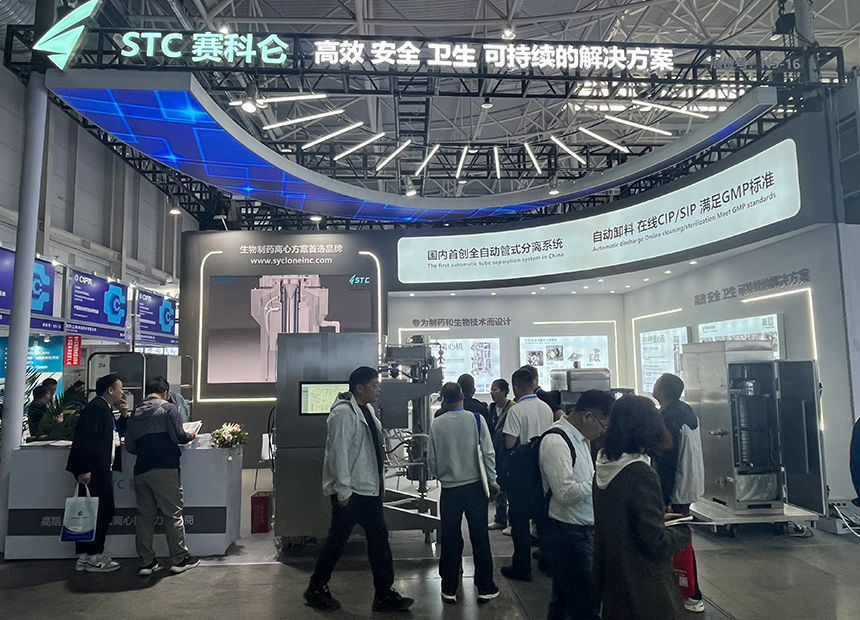 本次展会我们聚焦生物制药需求,国际馆重点展出STC全自动管式离心机、新一代悬屉离心机、GQ160管式离心机,一次性分装系统等多台设备,吸引多位研发负责人及科研人员驻足咨询。